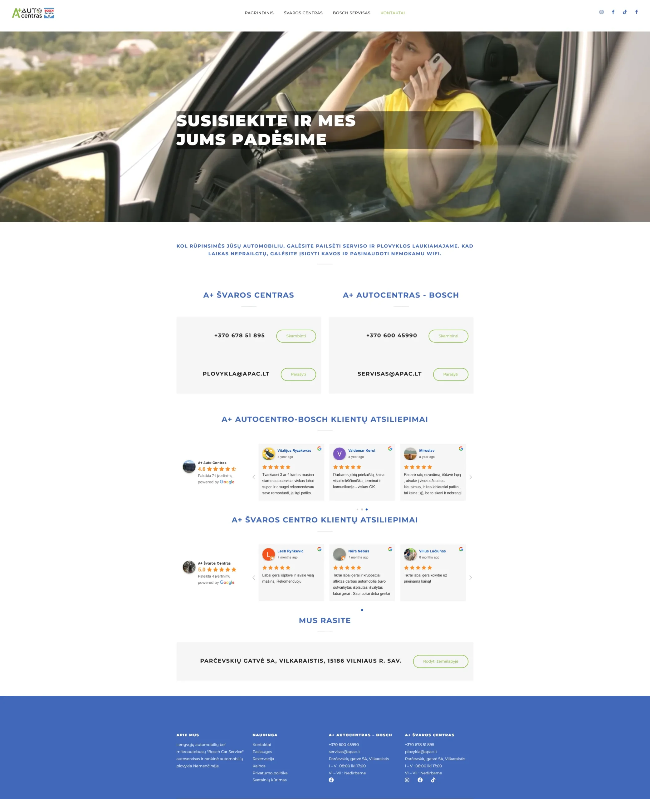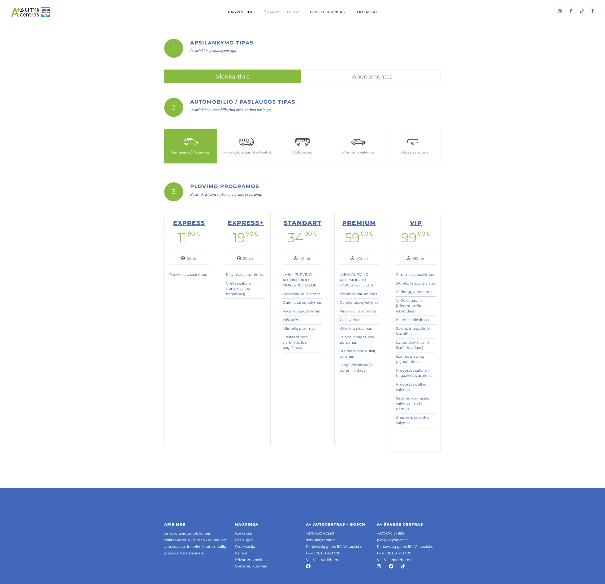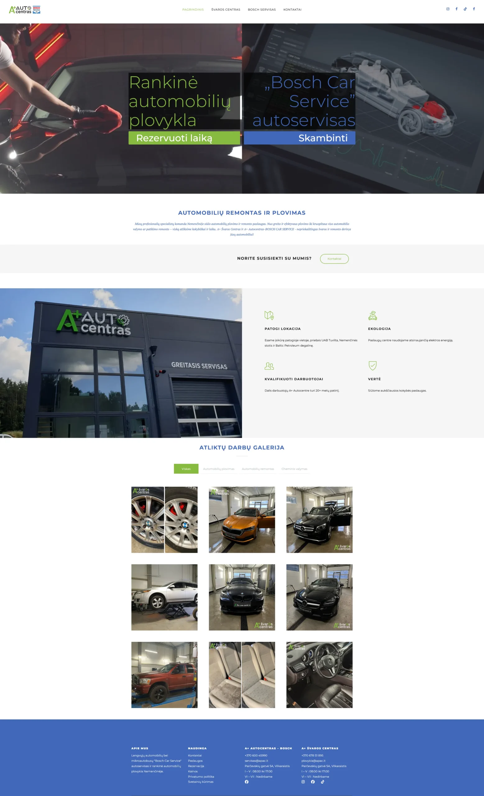 SvetainėsKlientas norėjo sukuri auto plovyklos ir autoserviso tinklalapį. Autoservisas turėjo turėti tiesiog kontaktinę informaciją, tačiau auto plovyklai reikėjo sukurti rezervavimo sistemą su patogia kalendoriaus peržiūra.