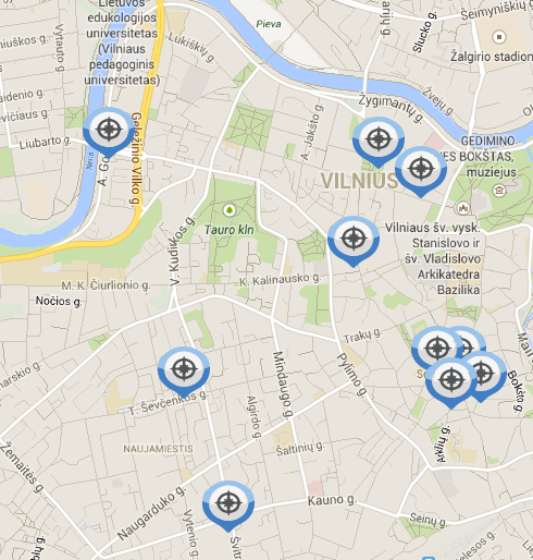 - Klubai žemėlapyje su galimybę rodyti greičiausią maršrutą;