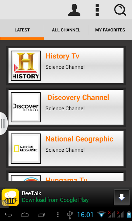 ProgramėlėsViena pirmųjų programėlių buvo sukurta transliacijoms žiūrėti android telefone.
