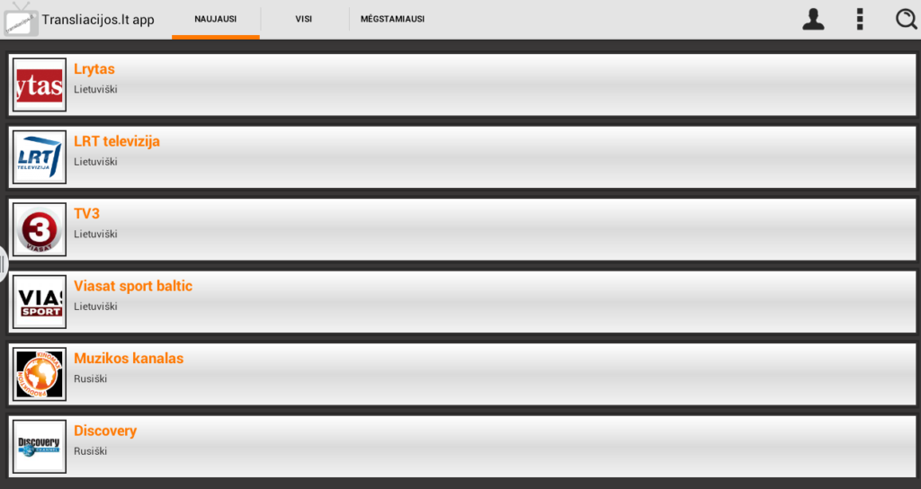 - Mėgstamus kanalus;