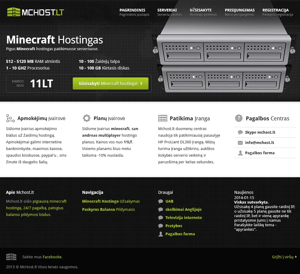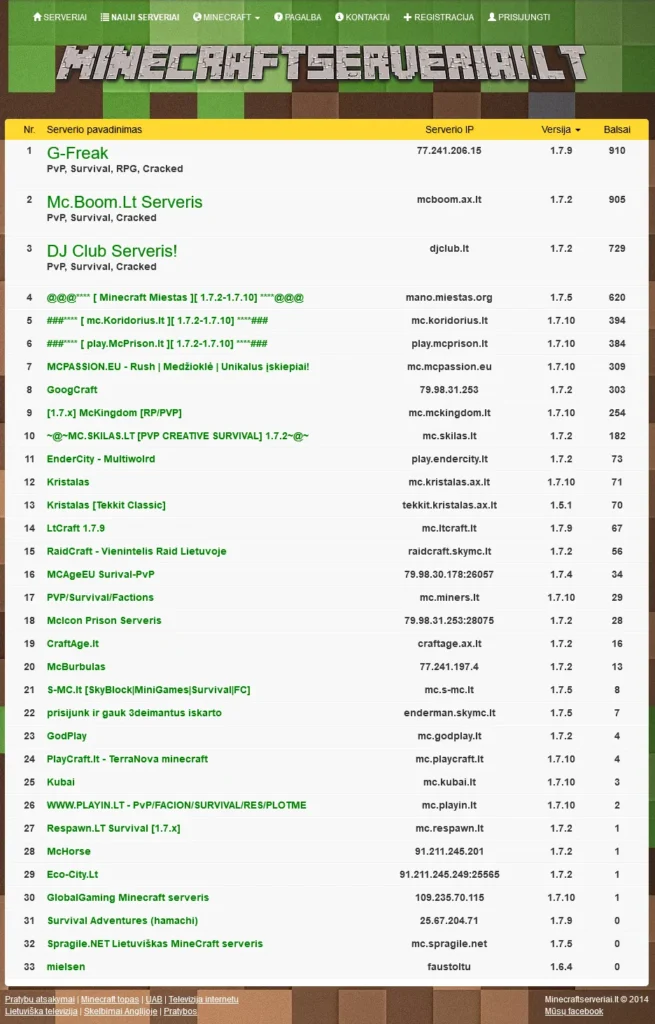 Serverio paruošimasPrieš dešimt metų įmonė vertėsi Minecraft žaidmų serverių nuoma bei serverių reitingavimo sistemomis.